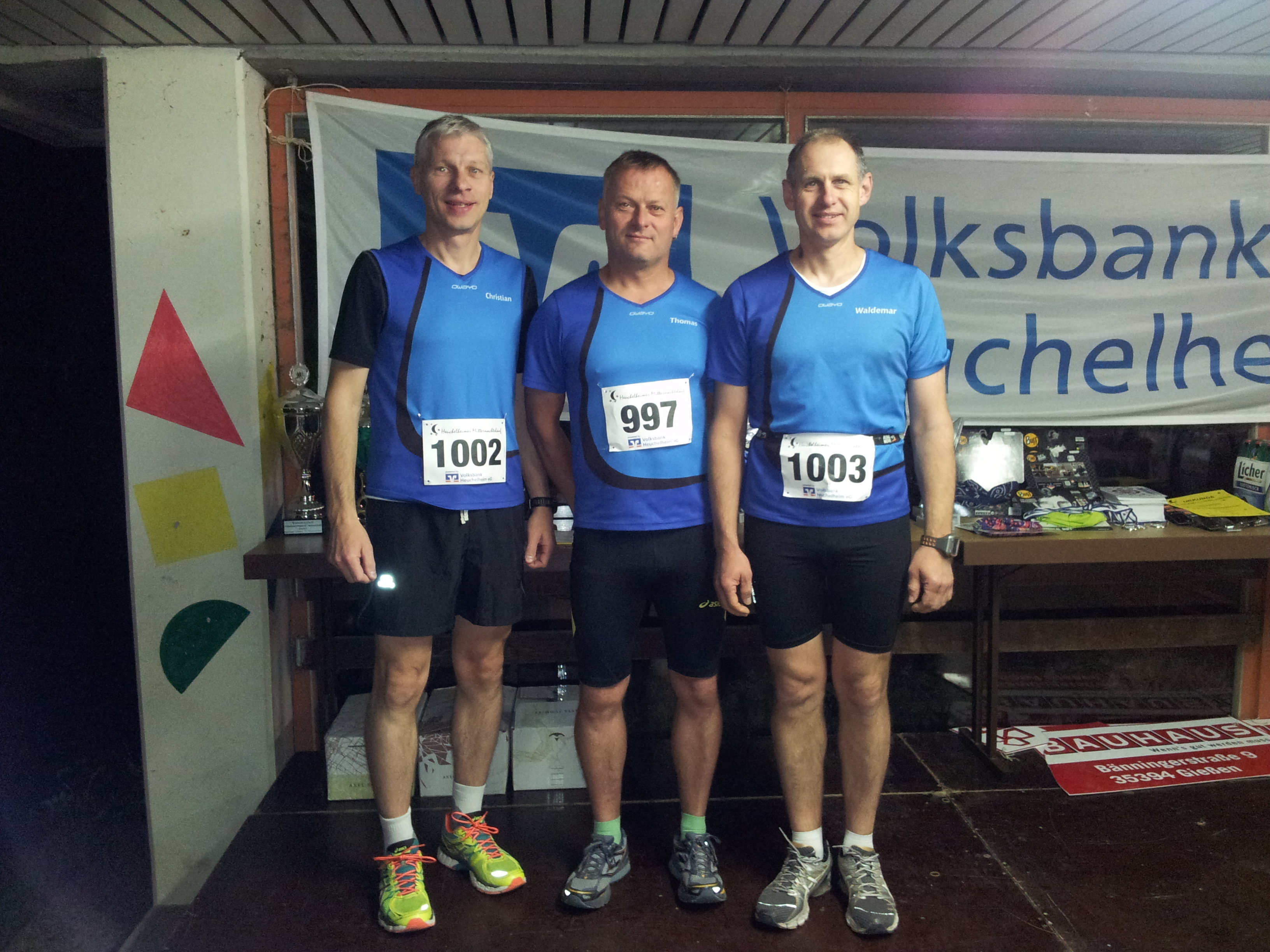 Eine Woche später, genau genommen in der kürzesten Nacht des Jahres waren wiederum Thomas Krieb und Waldemar Hehn am Start. Beim Mitternachtslauf in Heuchelheim ergänzte Christian Reinhardt ein Allendorfer Trio.