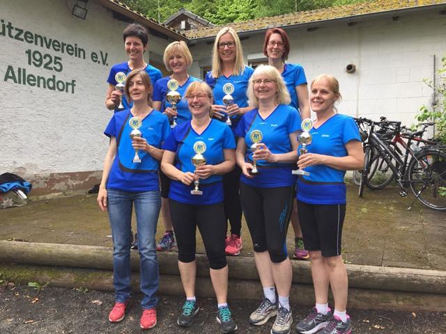 Die Wertung bestand aus einem Stehendschießen, danach einem etwa 900 Meter lange Rundkurs um die Gesamtschule und abschließend einem Liegendschießen. Zur gestoppten Zeit zwischen dem ersten und dem letzten Schuss wurde pro nicht getroffener Scheibe eine halbe Strafminute hinzugezählt. Die so errechneten Zeiten der vier Teilnehmer einer Mannschaft ergaben in Summe die Gesamtzeit für die Team-Platzierung. Als beste Mannschaft des Wettbewerbs standen am Ende die Jungs der Tischtennisabteilung des TSV Allendorf ganz oben in der Ergebnisliste. Zweiter wurden unsere Männer und die Frauen belegten die Plätze drei und fünf.