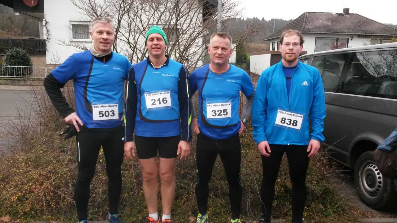 (cr) Waldemar Hehn, Thomas Krieb, Christian Reinhardt und Jan Rausch vertraten unseren LWT beim Adventslauf 2014 am Nikolaustag in Alten-Buseck. Alle vier konnten ihre 10km-Zeit, die sie bei der Vereinsmeisterschaft am vorherigen Wochenende erreichten, unterbieten. Schnellster Allendorfer war Waldemar mit einer Zeit von 43 Minuten und 21 Sekunden (Gesamtplatz 35). Thomas kam mit 43:34 Minuten (38.) ins Ziel, Christian mit 46:46 Min. (59.) und Jan mit 46:51 Min. (61.). Der Sieger David Bernardo-Sabanes von Blau-Gelb Marburg gewann mit 34:13.